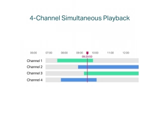 Reproducción simultánea de 4 canales: Reproduce la señal de hasta 4 cámaras al mismo tiempo. Aumente la velocidad de reproducción y encuentra eventos para revisar más fácil y rápidamente cada uno de los vídeos.