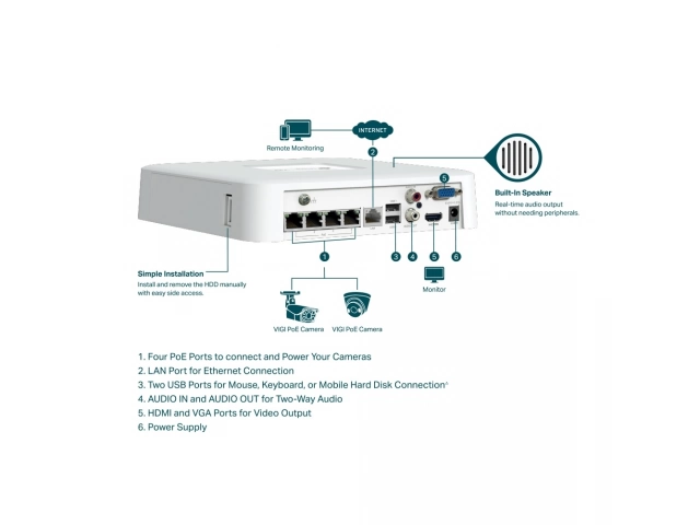 Instalación flexible: Elige el método de instalación adecuado simplemente montando tu NVR en la pared o colocándolo sobre o debajo de un escritorio.