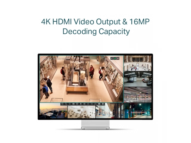 Salida de video HDMI 4K y capacidad de decodificación de 16MP: La definición de imagen de hasta 8MP y una pantalla de 4 canales garantizan capturar cada detalle, desde todos los ángulos.