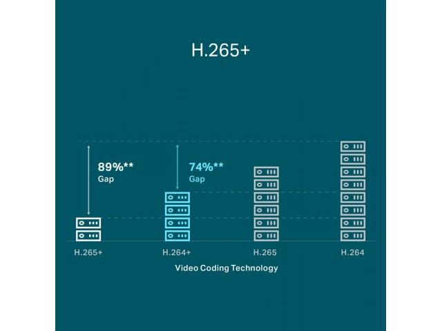 Video H.265+: Ahorra espacio de almacenamiento y ancho de banda sin sacrificar la calidad de imagen de los vídeos. Con ello puedes ahorrar en costes de monitorización.