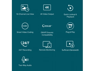 Plug & Play: Permite que las cámaras IP VIGI nuevas y sin usar se añadan automáticamente al nuevo NVR y se activen al instante, haciendo que la instalación sea más rápida que nunca.
