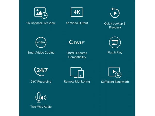 Salida de video HDMI 4K y capacidad de descodificación de 16MP: Definición de imagen nítida de hasta 8MP, y capacidad de decodificación de 8 canales a 2MP que permite disfrutar de la visualización y reproducción en directo de más canales al mismo tiempo.