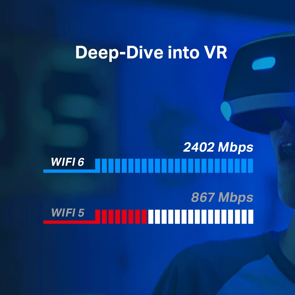 Velocidad Sin Oponentes Wi-Fi 6—Rompe la barrera del gigabit con velocidad de hasta 2402 Mbps (5 GHz) + 574 Mbps (2.4 GHz)