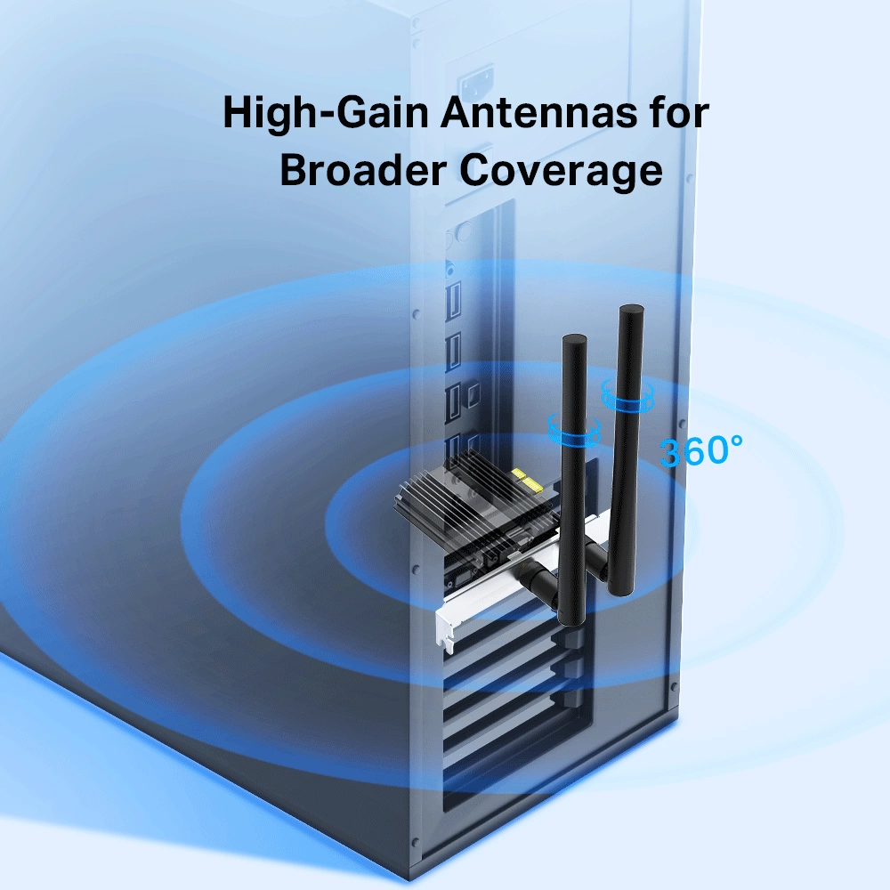 Cobertura de Señal Más Amplia— Conecta a tu Wi-Fi en más zonas de tu casa con las 2 antenas externs de alta ganancia que aseguran una gran cobertura y estabilidad mejorada