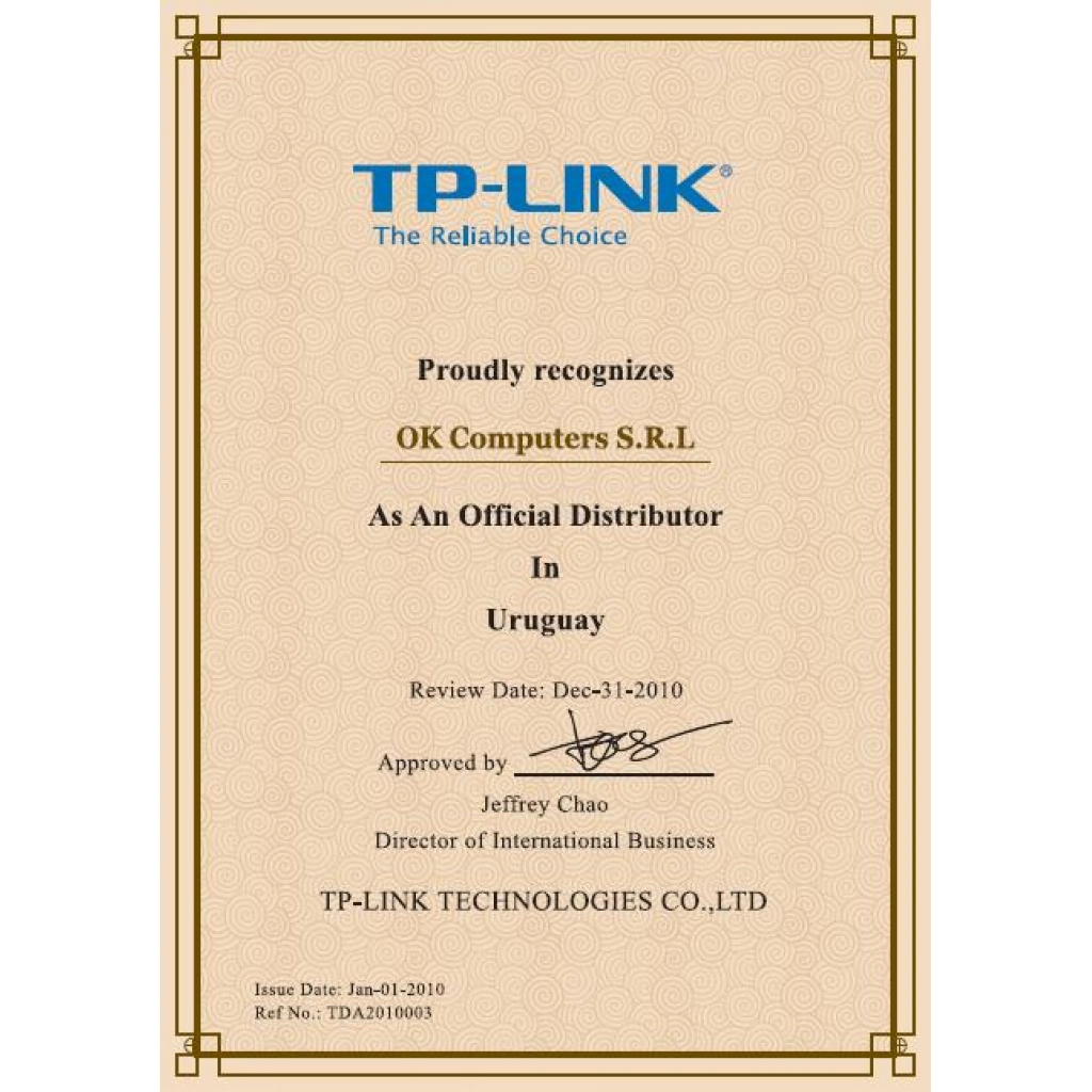 Tenemos el agrado de anunciar que TP-LINK Technologies Co. a elegido a OK Computers SRL como Distribuidor Oficial para Uruguay.