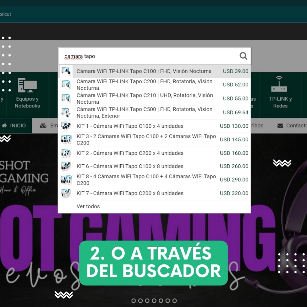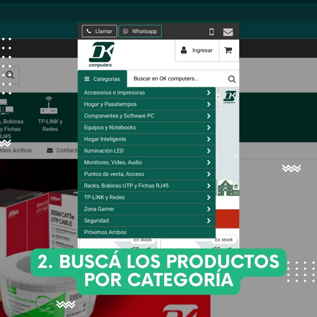 Luego, navegar por nuestra tienda es sumamente fácil. Desde la página de inicio, vas a encontrar una interfaz intuitiva que te va a guiar a través de nuestras diversas categorías de productos. O si tenés un producto específico en mente, ¡podés ir directo al buscador!