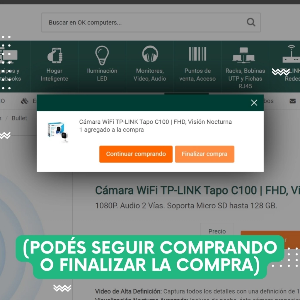 Una vez que encuentres el producto que buscabas, simplemente hacé clic en él para obtener detalles completos. Si es tu producto ideal, ¡agregalo al carrito! A continuación podés seguir comprando o finalizar tu compra.